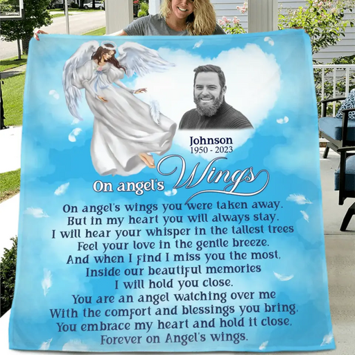 View full detailsPersonalized Memorial Fleece Throw Blanket & Quilt - Upload Photo - Memorial Gift Idea For Family Member - Forever On Angel's Wings
