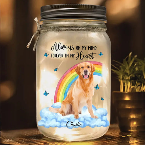 Personalized Pet Photo Mason Jar Light - Memorial Gift Idea for Pet Owners - Always On My Mind Forever In My Heart