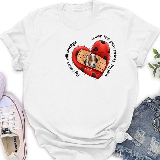 Personalized Memorial Shirt/Hoodie - Upload Dog Photo - Memorial Gift Idea For Dog Owner - My Heart Will Always Wear The Paw Prints By You