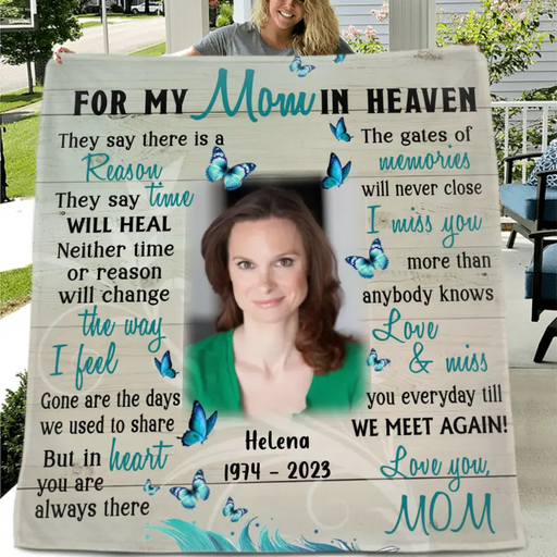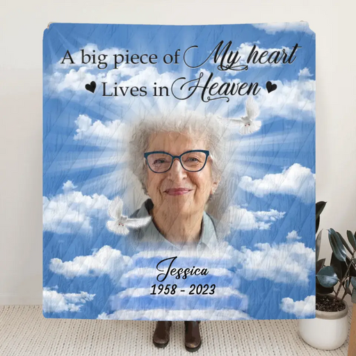 View full detailsPersonalized Memorial Photo Fleece Throw Blanket/Quilt - Memorial Gift Idea For Mother's Day/Father's Day - A Big Piece Of My Heart Lives In Heaven