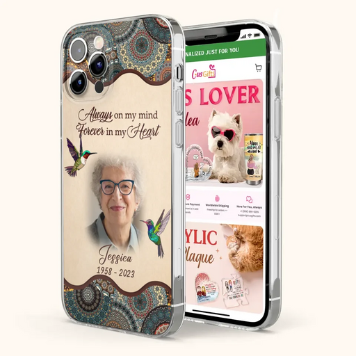 View full detailsCustom Personalized Memorial Photo Phone Case - Memorial Gift Idea For Mother's Day/Father's Day - Always On My Mind, Forever In My Heart - Case For iPhone/Samsung