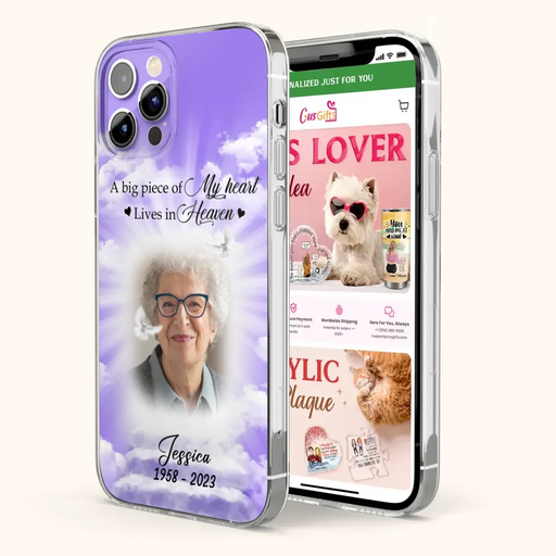 View full detailsCustom Personalized Memorial Photo Phone Case - Memorial Gift Idea For Mother's Day/Father's Day - A Big Piece Of My Heart Lives In Heaven - Case For iPhone/Samsung