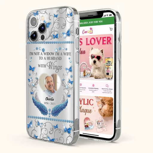 View full detailsCustom Personalized Memorial Photo Phone Case - Memorial Gift Idea for Mother's Day/Father's Day - I'm Not A Widow I'm A Wife To A Husband With Wings - Cases For iPhone/Samsung