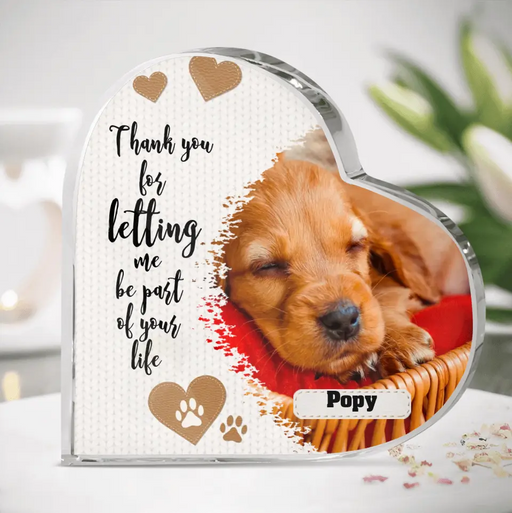 View full detailsPersonalized Memorial Photo Crystal Heart - Memorial Gift Idea For Pet Lover - Thank You For Letting Me Be Part Of Your Life