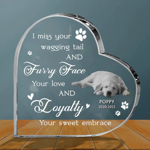 View full detailsPersonalized Memorial Dog Crystal Heart - Upload Photo - Memorial Gift Idea For Pet Lover - I Miss Your Wagging Tail And Furry Face