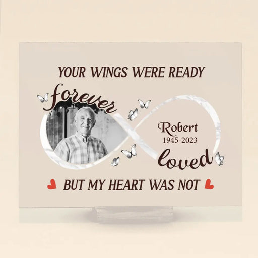 View full detailsPersonalized Memorial Acrylic Plaque - Upload Photo - Memorial Gift Idea for Family - Your Wings Were Ready But My Heart Was Not