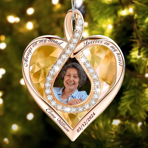 View full detailsPersonalized Heart Infinity Photo Memorial Acrylic Ornament - Memorial Gift Idea For Family Member - Upload Photo - Always On My Mind Forever In My Heart