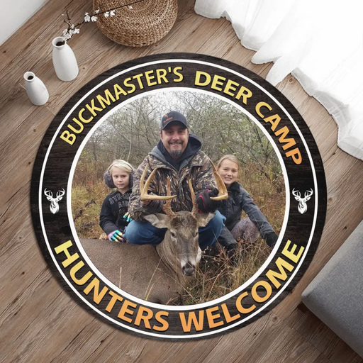 View full detailsPersonalized Hunting Photo Round Rug - Gift Idea for Hunting Lovers - Deer Camp Hunters Welcome