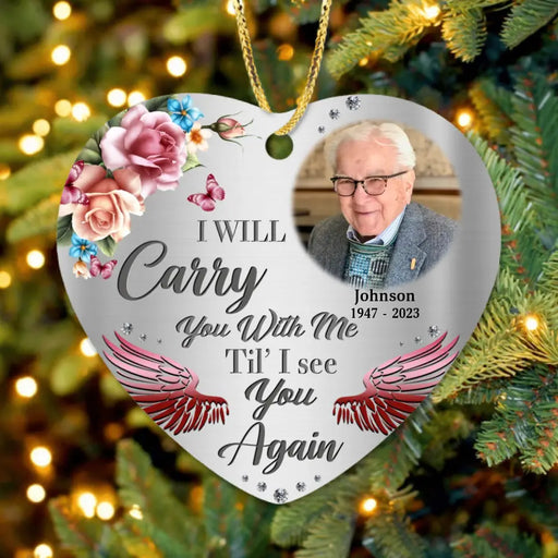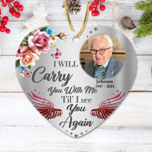 View full detailsCustom Memorial Heart Ornament - Upload Photo - Memorial Gift Idea For Family - I Will Carry You With Me Til' I See You Again