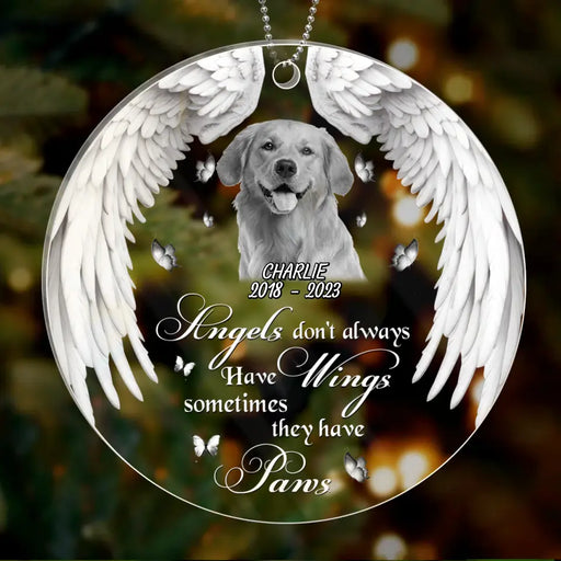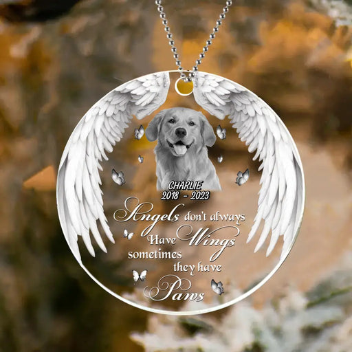 View full detailsCustom Memorial Pet Circle Acrylic Ornament - Upload Pet Photo - Memorial Gift Idea for Dog/Cat Owners - Angels Don't Always Have Wings Sometimes They Have Paws