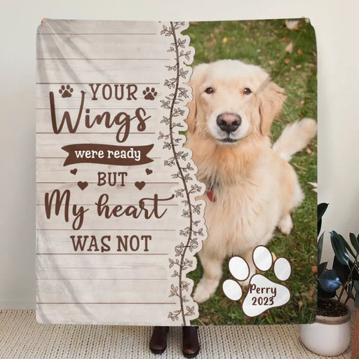 View full detailsCustom Memorial Pet Fleece Throw Blanket/Quilt - Upload Photo- Memorial Gift Idea for Dog/Cat Owners - Your Wings Were Ready But My Heart Was Not