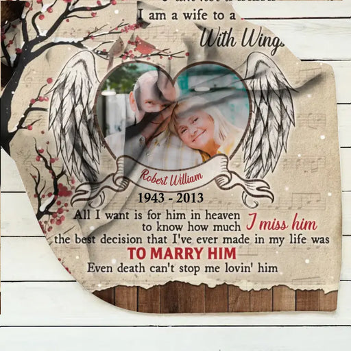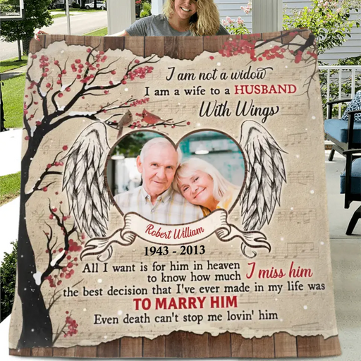 View full detailsCustom Memorial Photo Fleece Throw Blanket/Quilt/Pillow Cover - Memorial Gift Idea for Family - I Am A Wife To A Husband With Wings