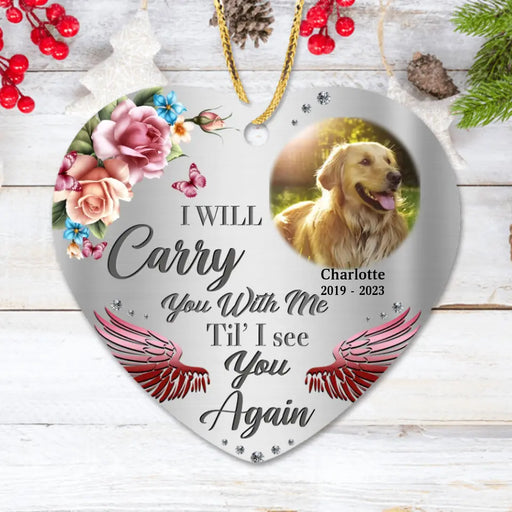 View full detailsCustom Memorial Dog Heart Ornament - Upload Photo - Memorial Gift Idea For Dog Owners - I Will Carry You With Me Til' I See You Again