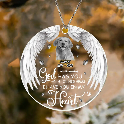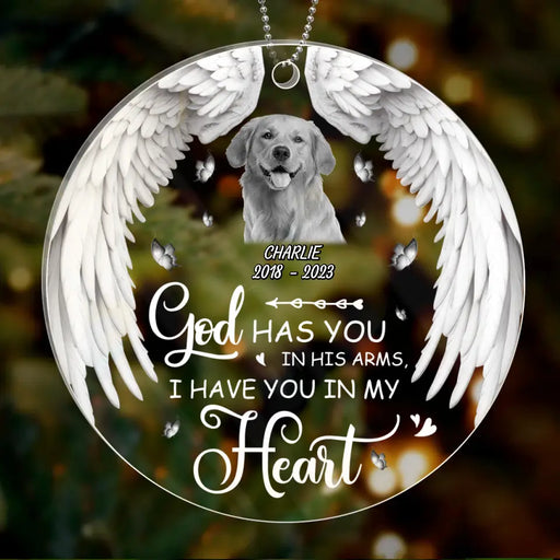 View full detailsCustom Memorial Pet Circle Acrylic Ornament - Upload Pet Photo - Memorial Gift Idea for Dog/Cat Owners - God Has You In His Arms, I Have You In My Heart