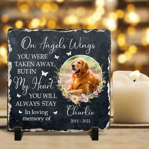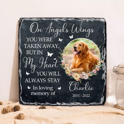 View full detailsCustom Dog Photo Square Lithograph - Memorial Gift Idea For Dog Owner - On Angels Wings You Were Taken Away, But In My Heart You Will Always Stay