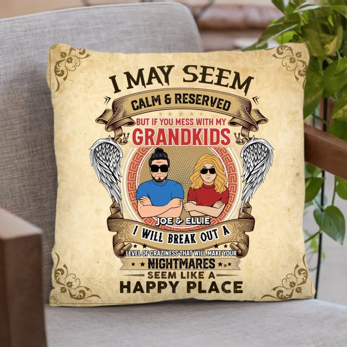 Personalized Grandpa Pillow Cover - Christmas Gift Idea For Grandpa From Grandkids - I May Seem Calm & Reserved
