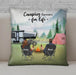 Personalized Camping Throw Pillow Cover - Couple With Up to 5 Pets - Camping Partners For Life