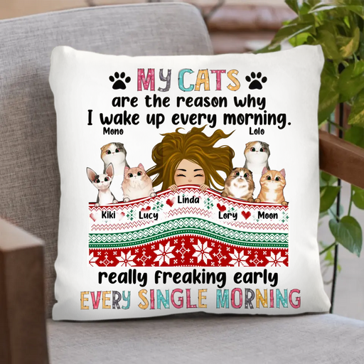 View full detailsPersonalized Cat Mom Pillow Cover - Gift Idea For Mom/Cat Lovers - Up to 6 Cats - My Cats Are The Reason Why I Wake Up Every Morning