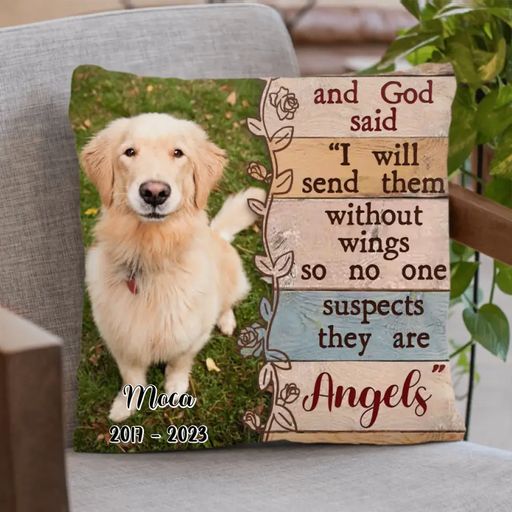 View full detailsPersonalized Memorial Pillow Cover - Upload Dog/ Cat Photo - And God Said "I Will Send Them Without Wings So No One Suspects They Are Angels"