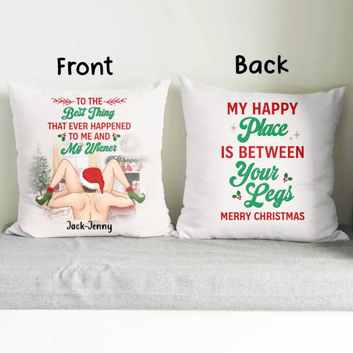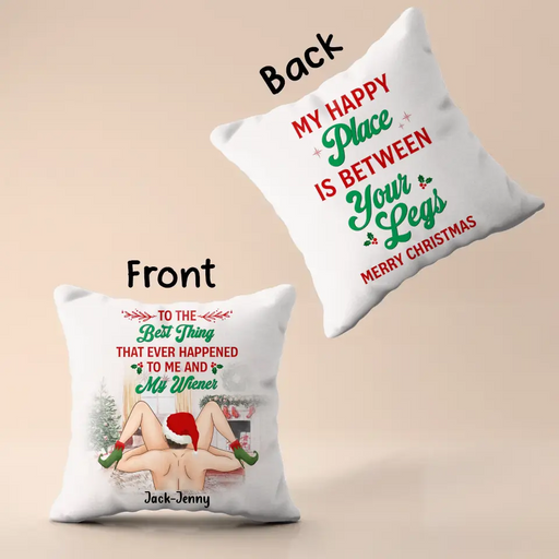 View full detailsPersonalized Christmas Couple Pillow Cover - Gift Idea For Couple/Valentines Day - My Happy Place Is Between Your Legs Merry Christmas