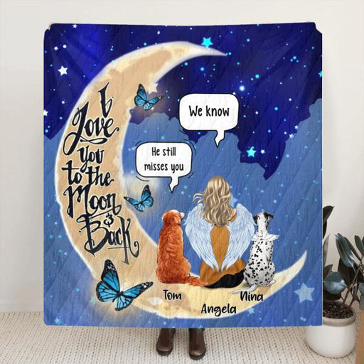 Personalized Memorial People And Pet Loss Pillow Cover/Quilt/Fleece Blanket - Up to 4 Pets - Memorial Gift Idea For Dog/Cat Lover - I Love You To The Moon And Back