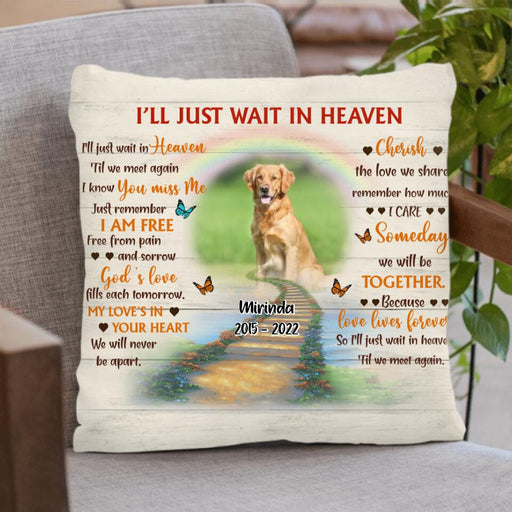 View full detailsPersonalized Dog Memorial Pillow Cover - Custom Photo Dog - Loss Gifts for Dog Owners - I'll Just Wait In Heaven
