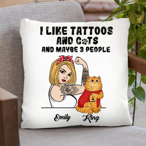 View full detailsPersonalized Cat Mom Pillow Cover - Up to 3 Cats - I Like Tattoos And Cats And maybe 3 People