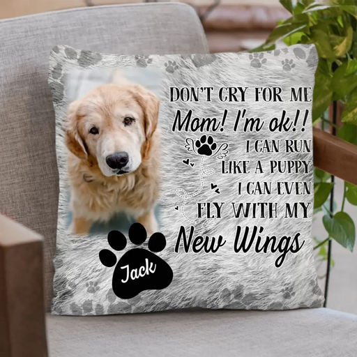 View full detailsPersonalized Memorial Pillow Cover - Upload Dog/ Cat Photo - Memorial Gift Idea - Don't Cry For Me Mom! I'm Ok!!
