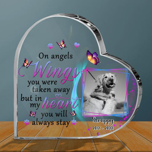 View full detailsPersonalized Dog Photo Memorial Acrylic Plaque - Memorial Gift Idea For Dog Owners - On Angels Wings You Were Taken Away But In My Heart You Will Always Stay