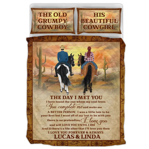 View full detailsCustom Riding Horses Couple Quilt Bed Sets - Gift Idea For Couple/Horse Lovers - The Old Grumpy Cowboy