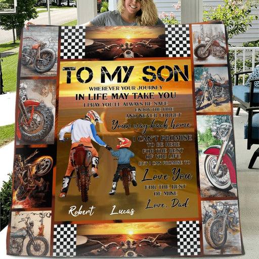 View full detailsPersonalized Father & Son Biker Fleece Throw Blanket/Quilt - Gift Idea For Bike Lovers From Father To Son - To My Son