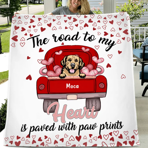 View full detailsPersonalized Dog Quilt/Fleece Throw Blanket - Up to 5 Dogs - Gift Idea For Dog Lover - The Road To My Heart Is Paved With Paw Prints