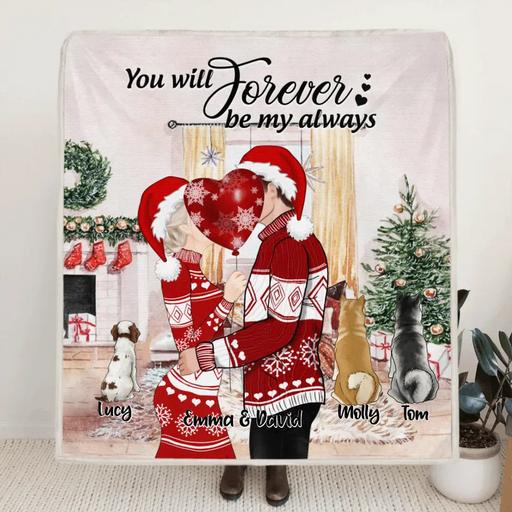 View full detailsPersonalized Kissing Couple Xmas Quilt/Fleece Blanket - Couple With Up to 3 Pets - Best Gift For Christmas - You Will Forever Be My Always - EWFNOK