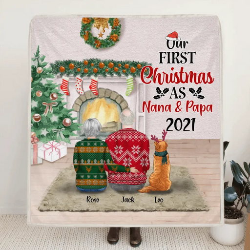 View full detailsPersonalized First Christmas As Nana & Papa Quilt/Fleece Blanket - Couple With Up to 4 Pets - Christmas Gift For Dog/Cat Lover