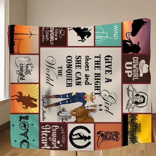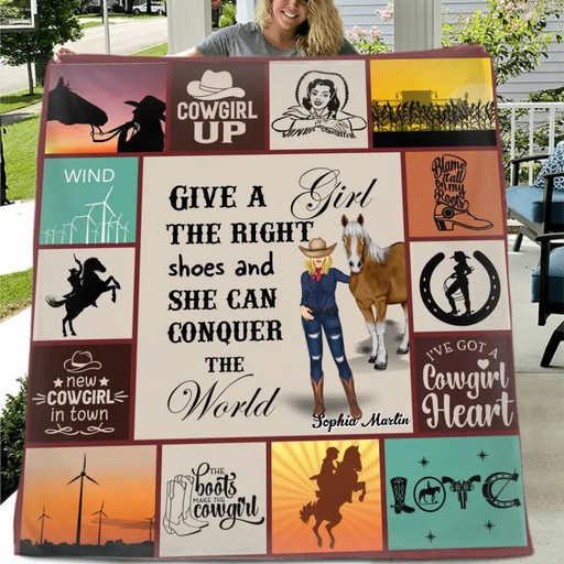 View full detailsPersonalized Horse Girl Quilt/Fleece Throw Blanket - Gift Idea For Girl/Horse Lovers - Give A Girl The Right Shoes