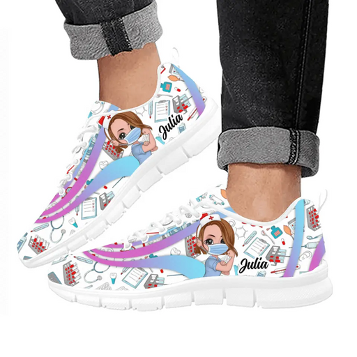 Discover ultimate comfort with our Personalized Nurse Gift Sneakers, featuring a lightweight construction and breathable mesh fabric for maximum co...