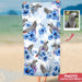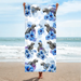Personalized Blue Flower Parrot Beach Towel - Upload Parrot Photo - Summer Gift Idea
