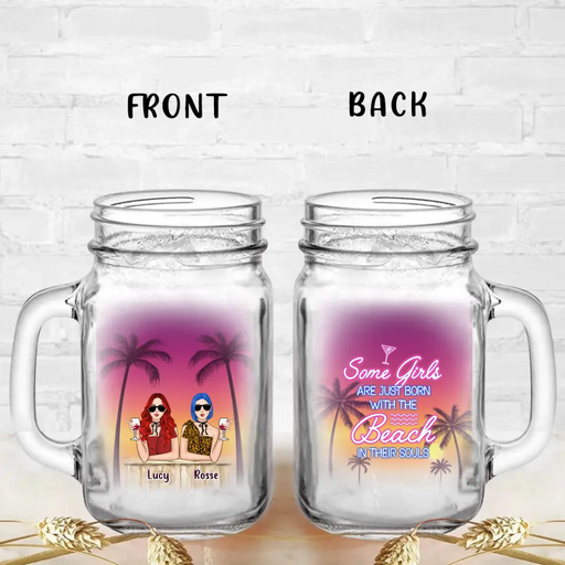 View full detailsCustom Personalized Summer Retro Besties Mason Jug With Straw - Gift Idea For Beach Lover/Friends/ Sisters - Some Girls Are Just Born With The Beach In Their Souls