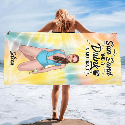 View full detailsPersonalized Bikini Girl Beach Towel - Gift Idea For Girl/Beach Lovers - Sun Sand And A Drink In My Hand