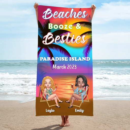 View full detailsPersonalized Girl's Trip Beach Towel - Up to 6 People - Gift Idea For Besties/Sisters/Friends - Beaches Booze & Besties
