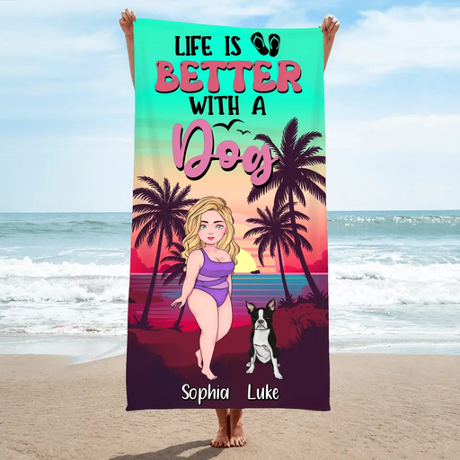 View full detailsPersonalized Dog Mom Beach Towel - Up to 4 Dogs - Gift Idea for Dog Lovers - Life Is Better With A Dog