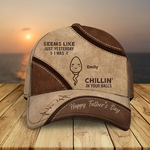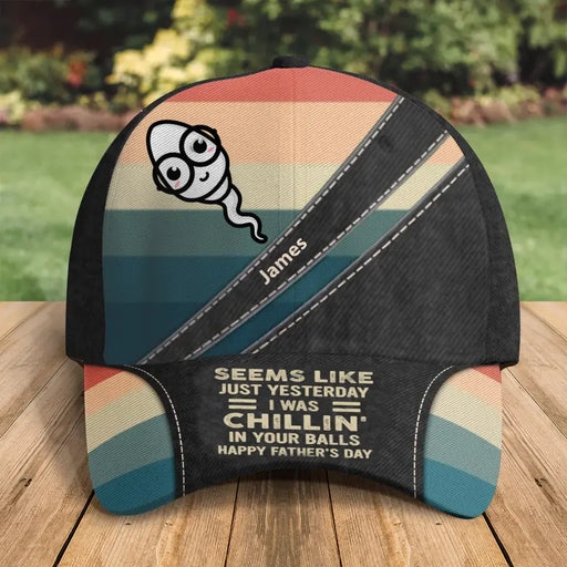 View full detailsPersonalized Funny Baseball Cap - Up to 6 Sperms - Father's Day Gift Idea - Seems Like Just Yesterday I Was Chillin' In Your Balls
