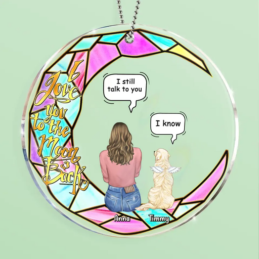 Personalized Memorial Pet Stained Glass Suncatcher Acrylic Ornament - Adult/Couple With Up to 4 Pets - Memorial Gift Idea For Dog/Cat/Rabbit Lovers - I Love You To The Moon & Back