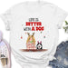 Personalized Christmas Dog Mom T-shirt/Long Sleeve/Sweatshirt/Hoodie - Up to 5 Dogs - Christmas Gift Idea For Dog Mom/Dog Lover - Life Is Better With Dogs