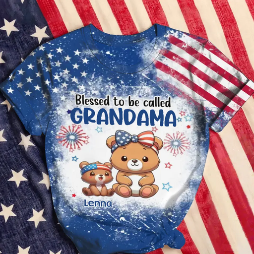 View full detailsPersonalized Grandma Bear AOP T-Shirt - Up to 10 Kids - Gift For Independence Day