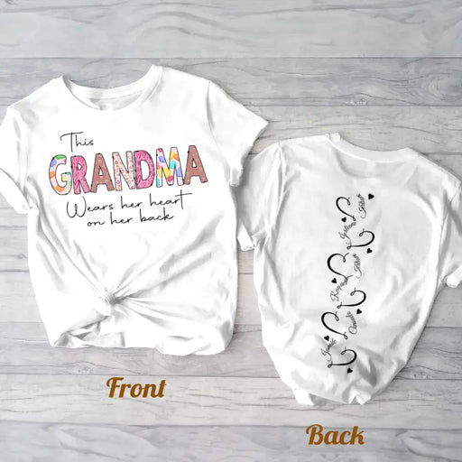 View full detailsPersonalized Grandma AOP T-Shirt - Up to 6 Kids - Mother's Day Gift Idea For Grandma - This Grandma Wears Her Heart On Her Back