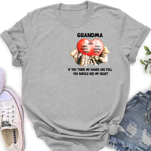 Personalized Grandma T-shirt/Hoodie - Gift Idea For Mother's Day/Grandma - Up to 7 Grandkids - If You Think My Hands Are Full You Should See My Heart