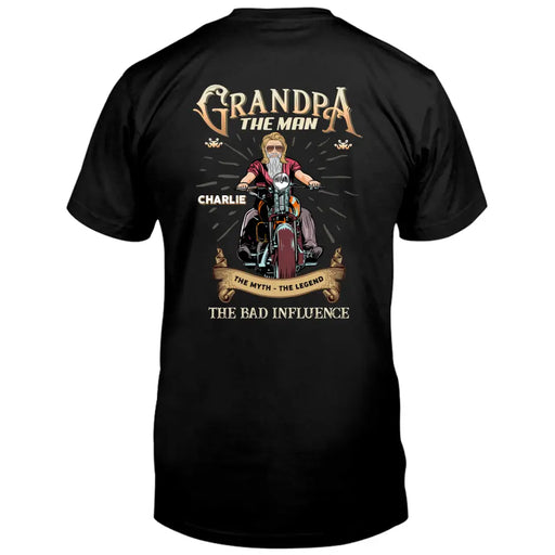 View full detailsPersonalized Grandpa The Bad Influence Biker T-shirt - Design On The Back - Gift Idea For Grandpa/Father's Day - Grandpa The Man The Myth The Legend