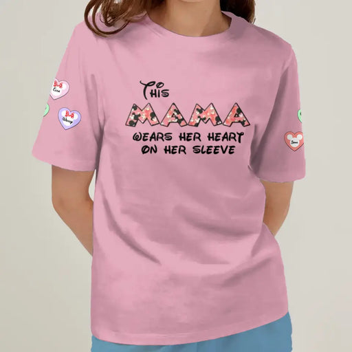 View full detailsPersonalized Mother's Day AOP T-Shirt - Up to 10 Kids - Mother's Day Gift Idea for Mom/Grandma - This Mom/Nana Wears Her Heart On Her Sleeve