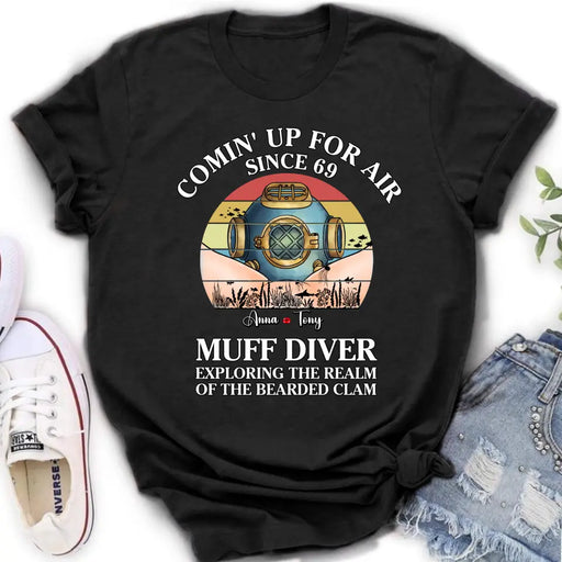 View full detailsPersonalized Funny Couple T-Shirt/Long Sleeve/Sweatshirt/Hoodie - Gift Idea For Couple - Comin' Up For Air Since 69 Muff Diver Exploring The Realm